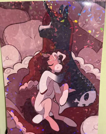 ex charms: 2" with a broken glass holo film and colorful hook clasps